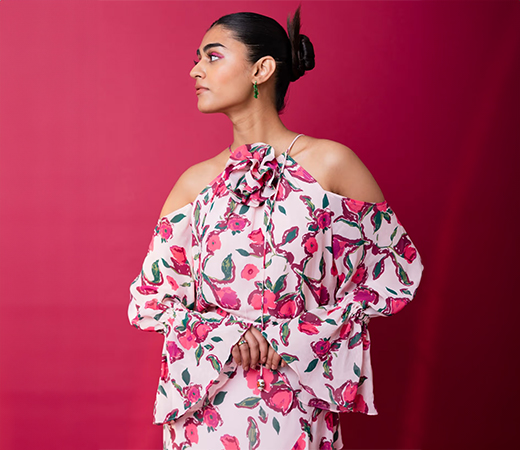 Puff sleeves are the perfect mix of vintage and modern aesthetics. The silhouette is such that it gathers at the shoulder and cinches at the cuff. Puff sleeves add a touch of femininity to your outfit. Consider pastel hues and floral prints for a romantic look. You can opt for sheer fabrics, like organza and chiffon, to add to the delicate vibe. These sleeves also give your shoulders more definition. You can pick a puff-shoulder jacket to layer with a saree to achieve a bold look. This can be worn to grand office events and weddings.