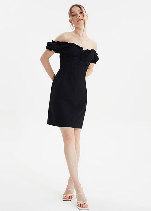 Off-the-shoulder, printed and puff-sleeves, need we say more? This will be your hero dress for an intimate date night as well as for the start of spring.