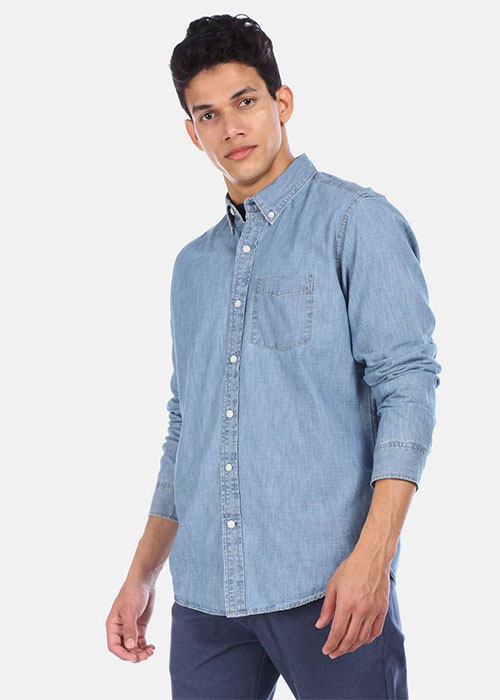 Love the idea of denim shirts but not sure if it’s the right choice for this scorching weather? Get a cotton shirt that has a denim feel to it. Problem solved!