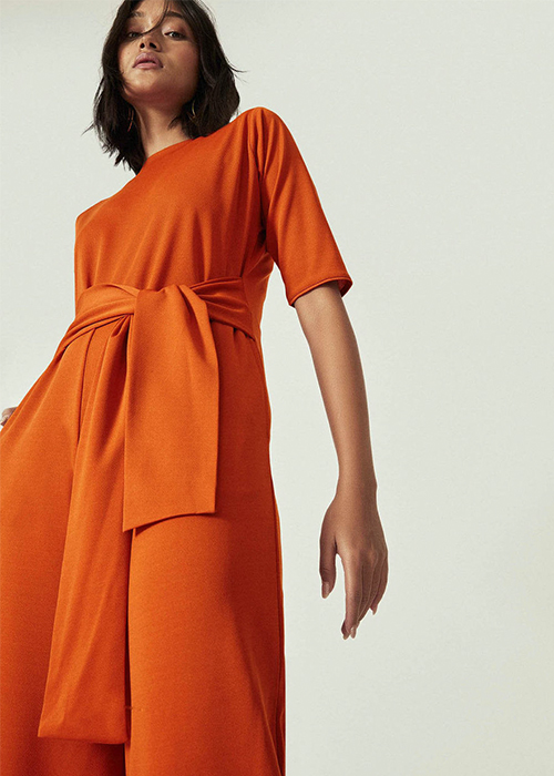 Lightweight and breathable, this tangerine jumpsuit brings alive the quintessential summer spirit. Styled with a pair of hoops, wear this for one of your intimate brunches with the girls.