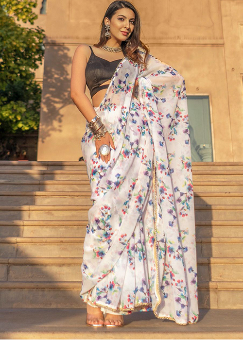 A pastel, floral saree with a contrasting blouse is the recipe for a wholesome and fashionable traditional summer closet. Make sure you get experimental with draping this beautiful and versatile six-yard!