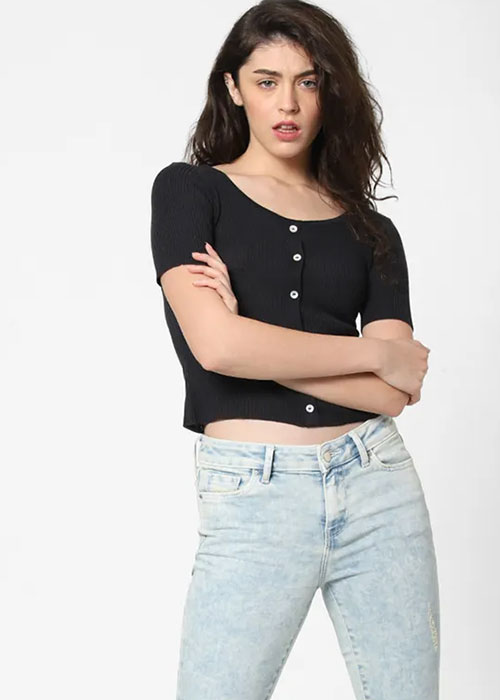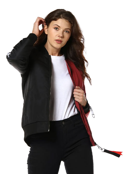 Black Front Zip Sleeve Striped Stylish Jacket Campus Sutra
