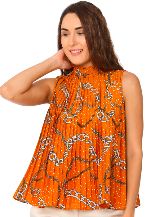 Halloween without pumpkins are like macaroni without cheese – boring! Count on this knife-pleated top to Inject the right amount of the quintessential spooky shade into your wardrobe.
