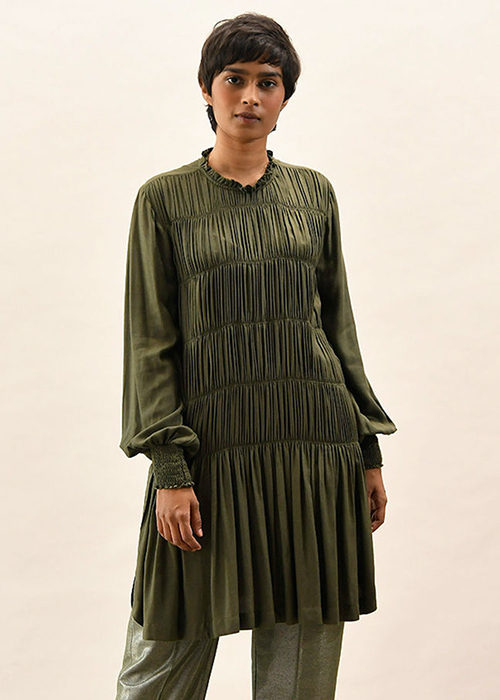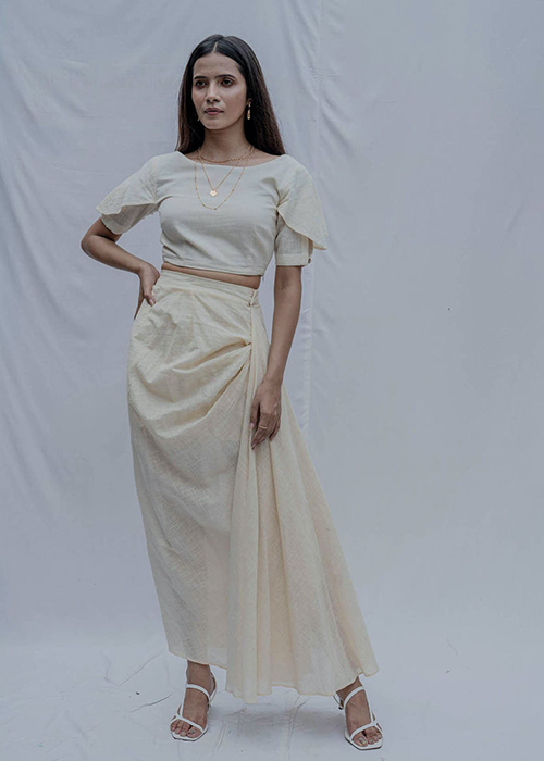 Headed by Kanika Jain, Kanelle strikes the right balance between playful and edgy with a focus on boxy cut silhouettes, handmade textiles and abstract shapes. These statement-making pieces can be worn simple or layered with accessories—it’s really upto you.