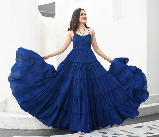 If you are considering your photo shoot to be in Bali, Maldives, or the coasts of Kerala, you would want to pick a more relaxed outfit out of all the pre-wedding dress ideas we have on the plate. Go for lightweight fabrics in pastel colours with flowy silhouettes. Say maxi dresses, slit dresses, tiered dresses, bohemian skirts, and off-shoulder tops. For hair, opt for natural-looking beach waves, soft makeup, and glossy lips. For accessories, adorn yourself with seashells, tassels, vibrant colour stones, and tropical flowers. Head to an exotic beach, a lush jungle, or an island for this photoshoot to capture the exact essence of a dreamy getaway.