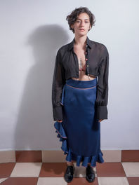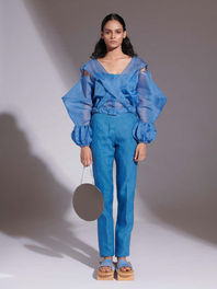 We have a serious case of the blues. Dress the classic colour up with twirl-friendly ruffles, cut-outs and gossamer fabrics.
