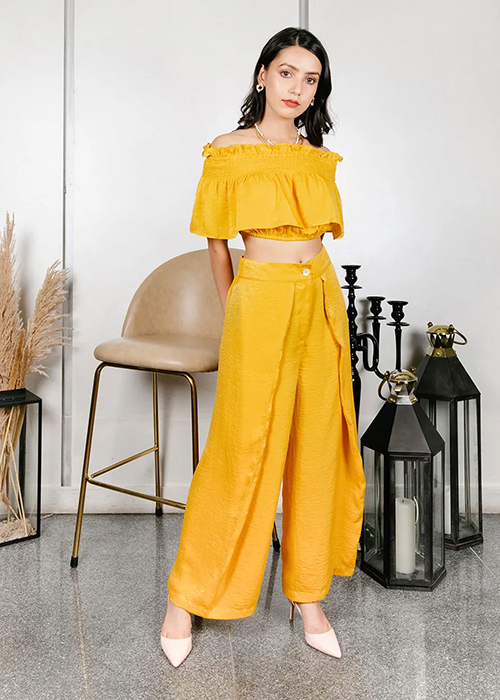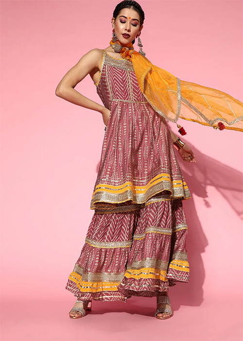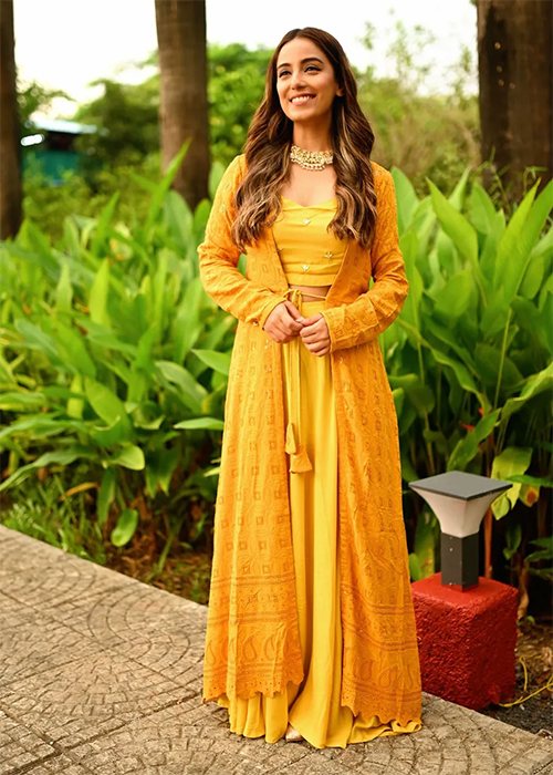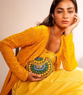 While pinks and pastels are the obvious choice for the bride’s crew, this season is all about sunshine yellow and shades of mustard. Stand out in flirty co-ord sets and strappy kurtas dipped in sunny hues for any functions in the daytime. Complement the look with sleek gold jewellery like this weightless cuff—take a look below!