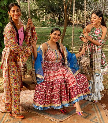 If you’re looking forward to having a blast rather than tied up in your draped outfits, then some freestyle anarkali and sharara cuts are ideal for you. Check out our vibrant picks from bestselling labels like Aachho, Ambraee and Ishin that will inspire you to take the fuss-free route.