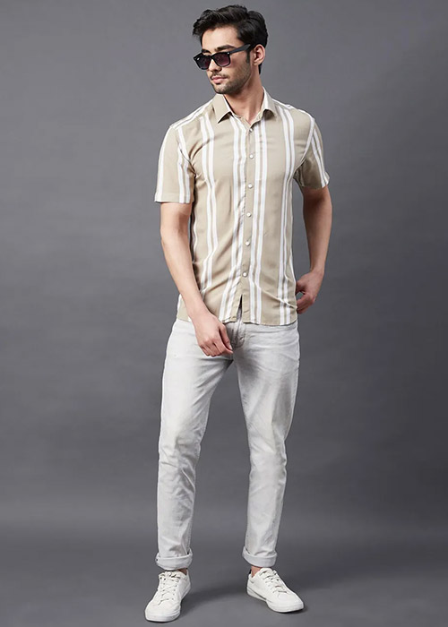 Not just light fabrics, but light summer-friendly colours are also neat additions to your summer work wardrobe. This striped pastel green shirt exudes a cool vibe.
