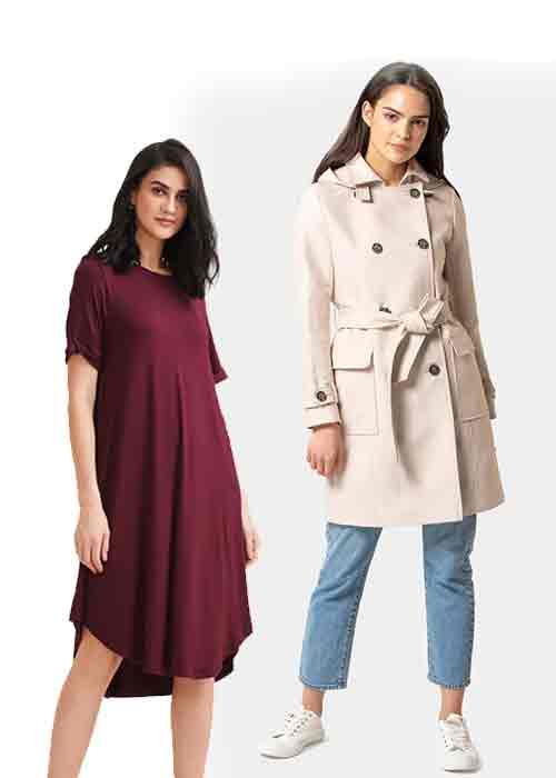 This look is meant for the classic switch between casual to formal. Wear your favorite T-shirt dress while you snuggle into your blankets all day and throw on a trendy trench-like long jacket to make this into a formal look.