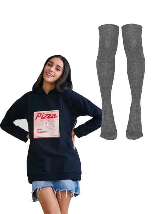 Who doesn’t like sweatshirts? Bring back the boyfriend sweatshirt trend and wear it with cute, woolen, thigh high socks. You can even try a sweatshirt dress for this look. Step out with a pair of heavy sneakers.