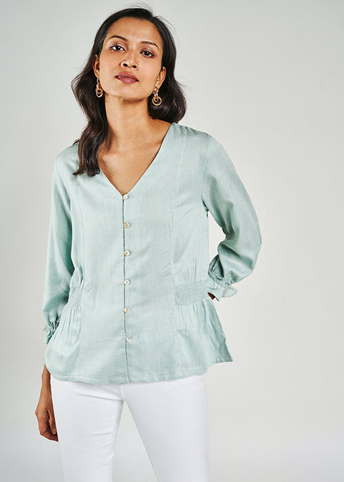 But this one color caught my eye in January, and I can’t seem to get it out of my mind. It’s not vivid, it soothes the heat and it doesn’t make me look like a popsicle either! Drumrolls for ‘sage green’. It’s paler than mint and lighter than teal, and I absolutely love it.