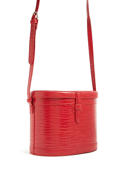 5. If you are someone who likes to maintain subtle hints of this intense hue, then this standout cylinder, cross-body bag is just what you need.