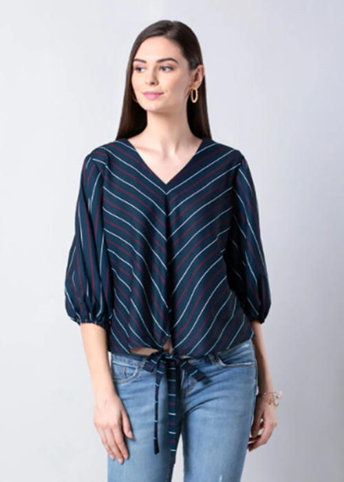Navy Blue Chevron Knotted Top, Fab Alley Rs 1,400