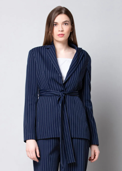 If you’re looking for a classic treatment for your stripes, you can’t go wrong with the combination of white and navy streaks. Lean towards pinstripes for your work-wear wardrobe.