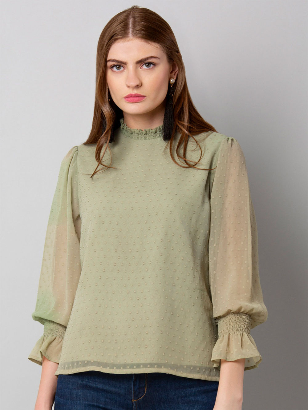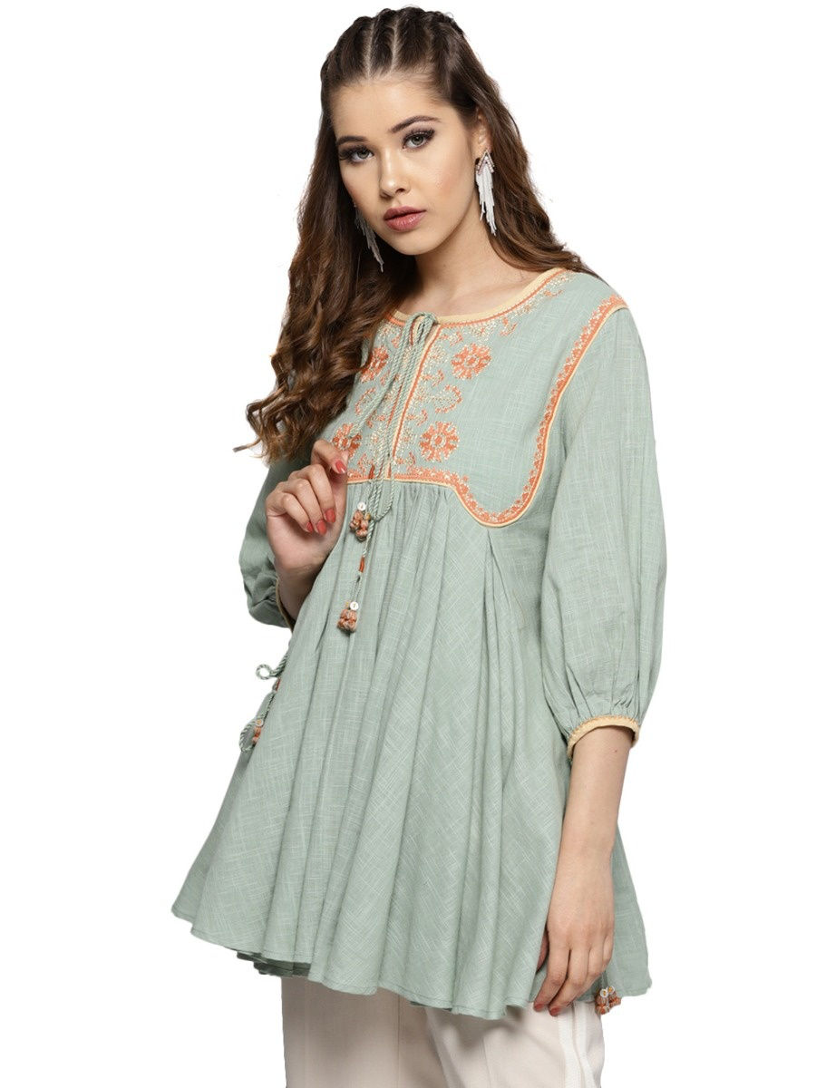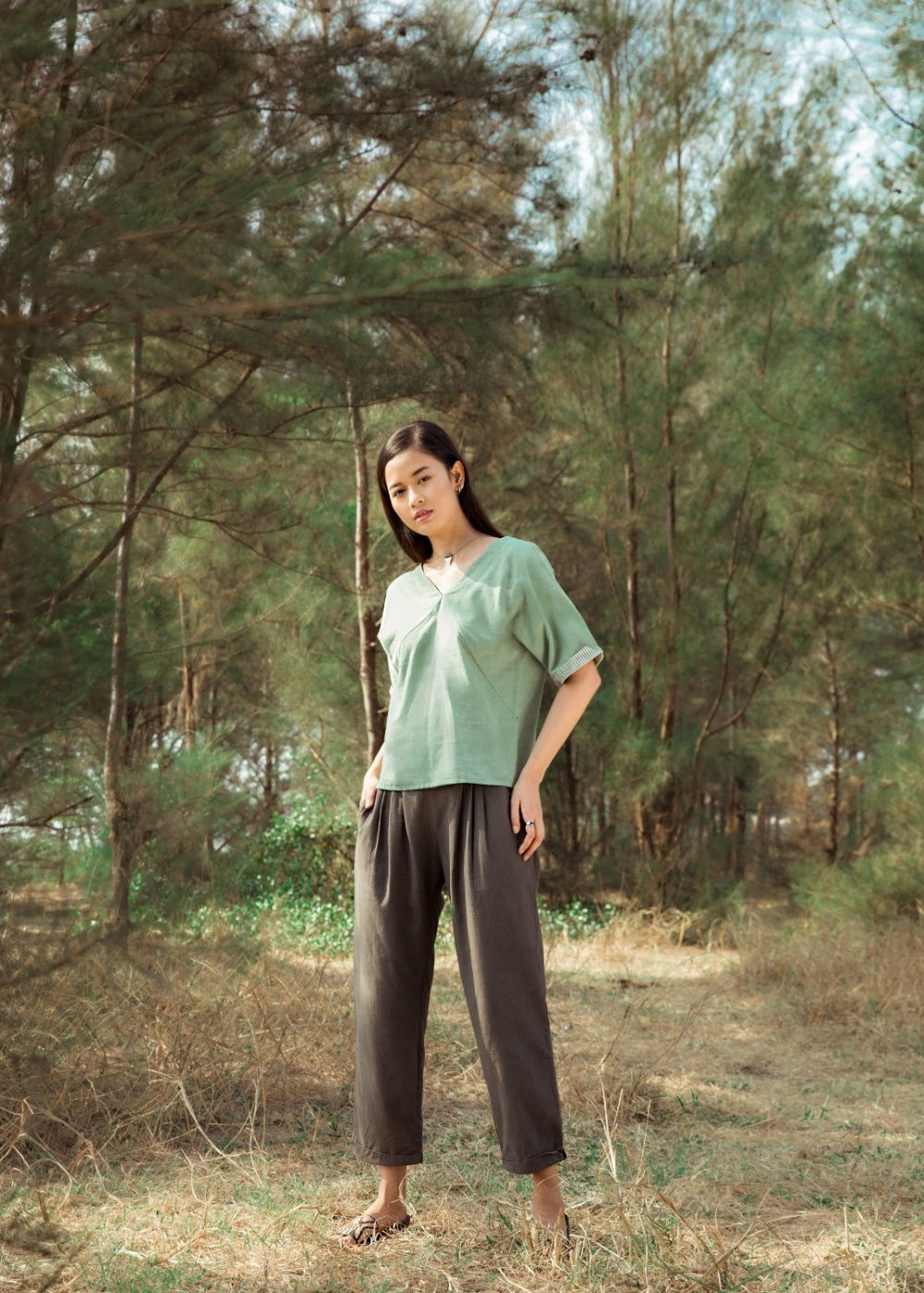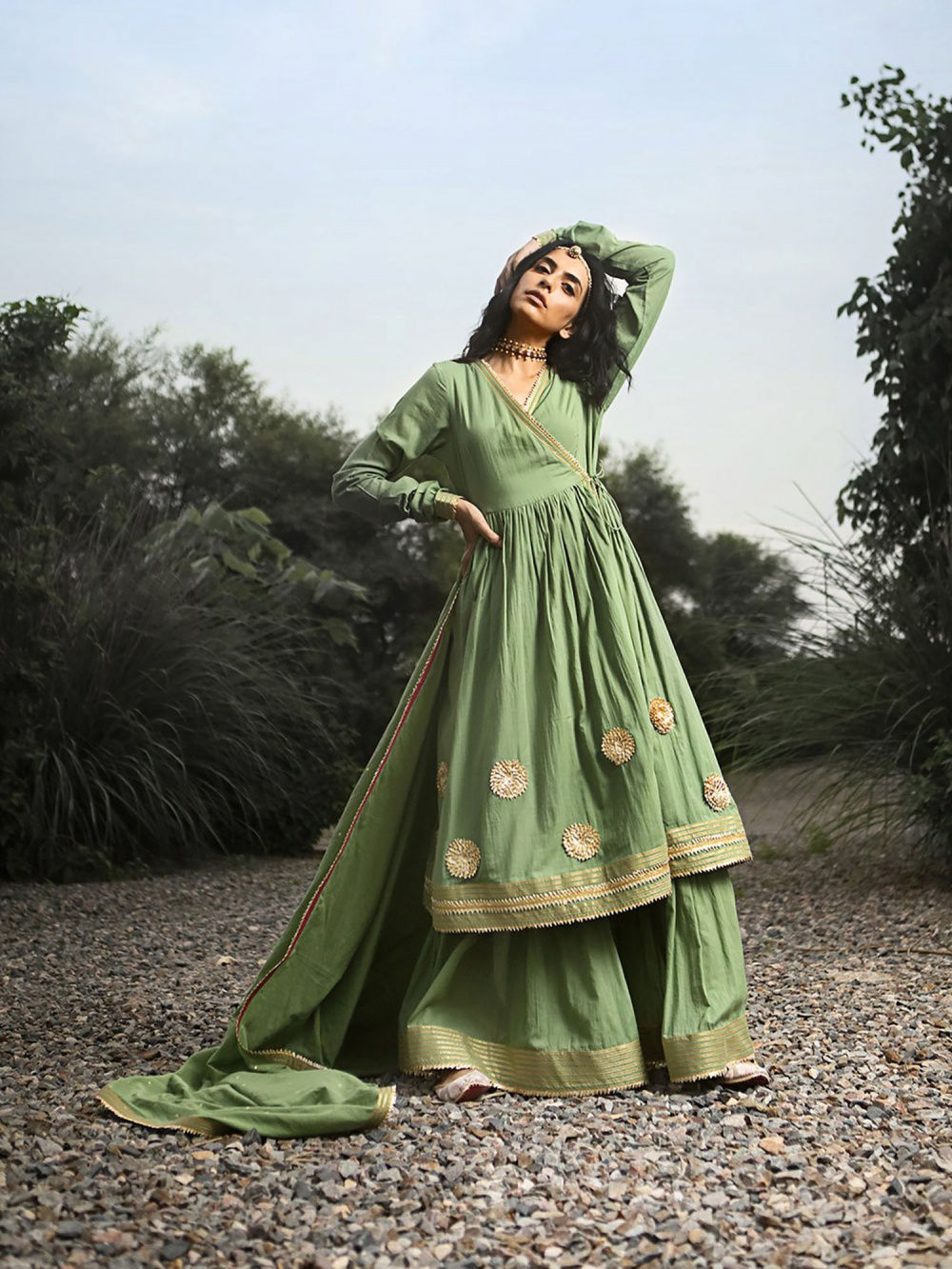 While we’re not quite ready to bid farewell to the saturated hues that ruled this summer, we think it’s time to let the autumnal colour palette ease into our closets–one trendsetting tone at a time. And before you think it’s one of the midnight hues warranted for winters, you’ll be surprised to find out that it’s the unexpected pistachio green! Think iterations of sage, mint and even olive. The common denominator on multiple F/W’19 runways – from Sally La Pointe’s sultry satin separates and Marc Jacob’s tailored pieces with beanies to match to Jil Sander’s gradient layers and Ryan Roche’s anti-fit ensembles – head-to-toe pistachio was the hero at every show. Furthermore, we find that the colour not only pairs well with shades of beige (also a big trend) but works well for the warmer weathers too due to its pale undertone. Need proof? Fashion insiders and celebrities are already channelling the hue on the streets and on their Instagram feeds. Whether it’s Gigi Hadid in her power-packed pistachio pantsuit at Heron Preston’s presentation at Paris Fashion Week or Irina Shayk’s itsy-bitsy holiday outfit, she sported in Florence, we’re convinced that the pale green palette is here to stay. Below, we’ve rounded up some cool contemporary styles in our favourite gelato hue and have thrown in some ethnic essentials for good measure too! We recommend you keep these pistachio pieces handy and pair them with matching or tan and white accessories to stay ahead of the fashion curve.