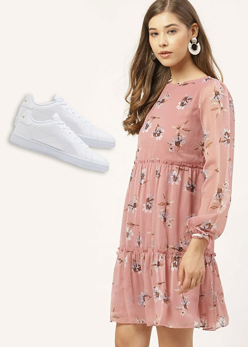 Twenty Dresses by Nykaa Fashion Pink You Got Me Ruffled Dress, Reebok Royal Complete CLN2 White Solid Sneakers