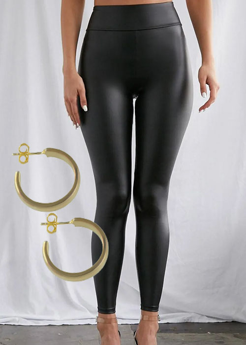 Forever 21 Black Faux Leather Leggings, ARVINO Condo Small Gold Hoops